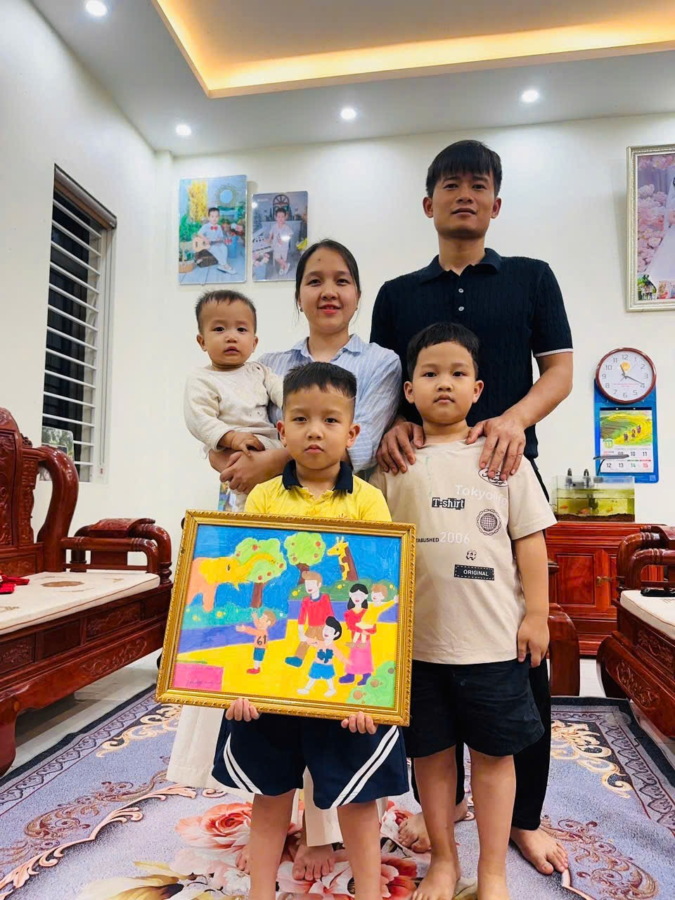 Chi tiết giàu cảm xúc: Những nụ cười rạng rỡ trên khuôn mặt mỗi thành viên trong gia đình được các con chăm chút từng chút một.