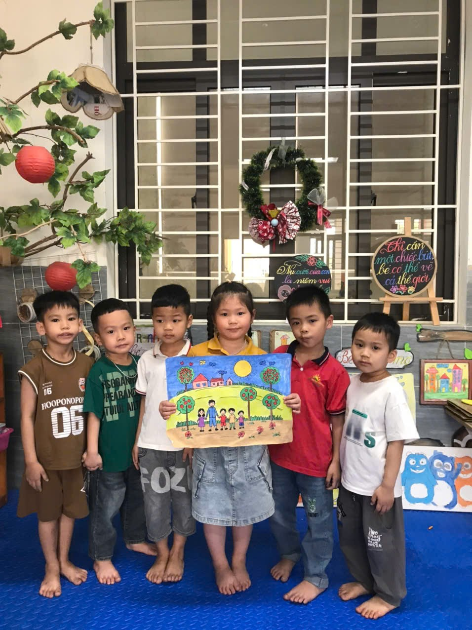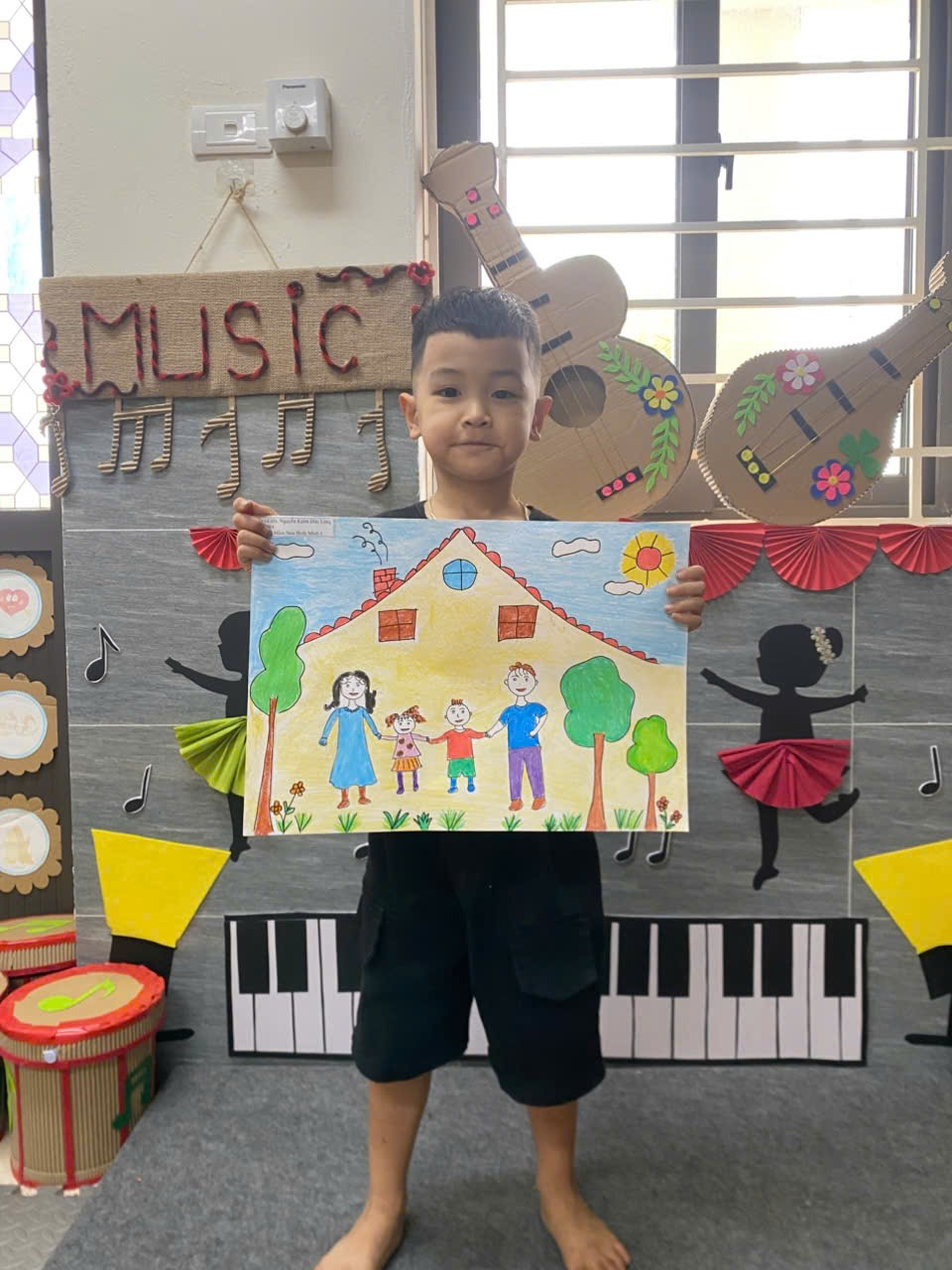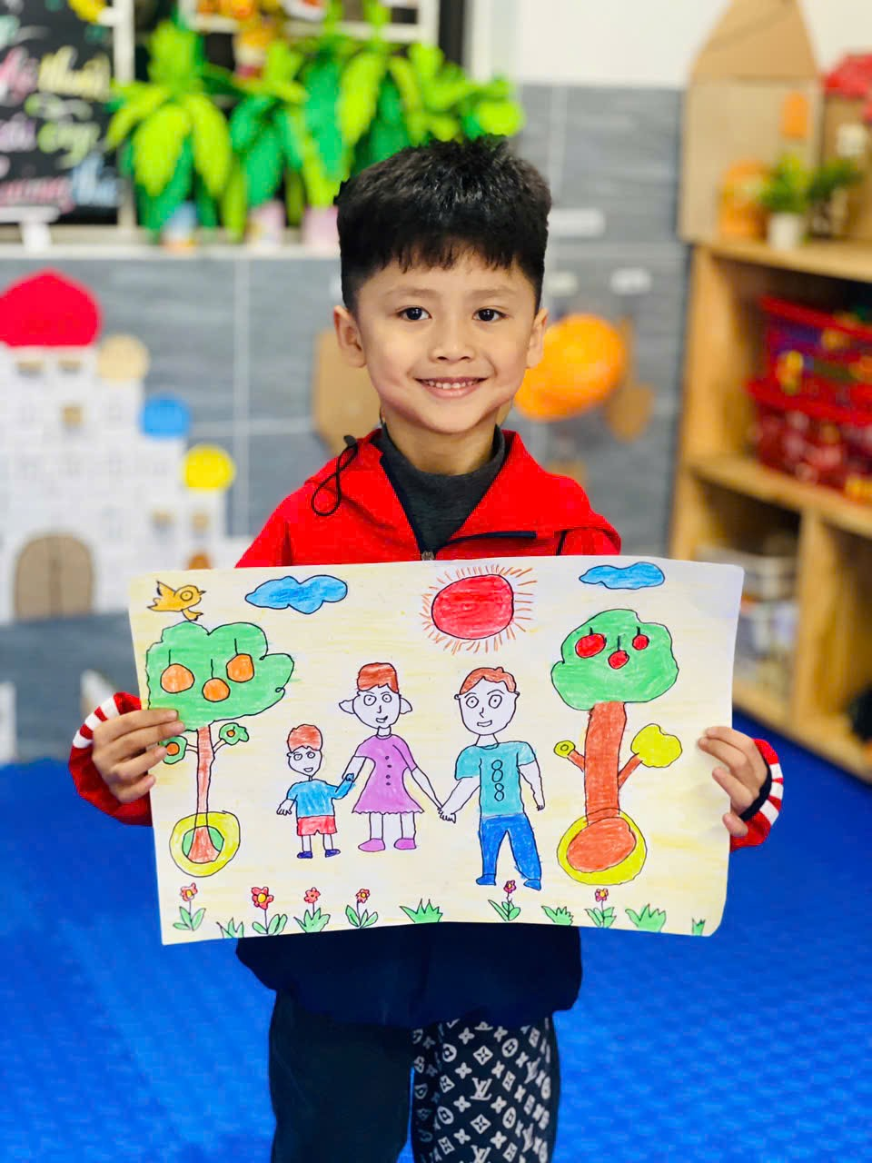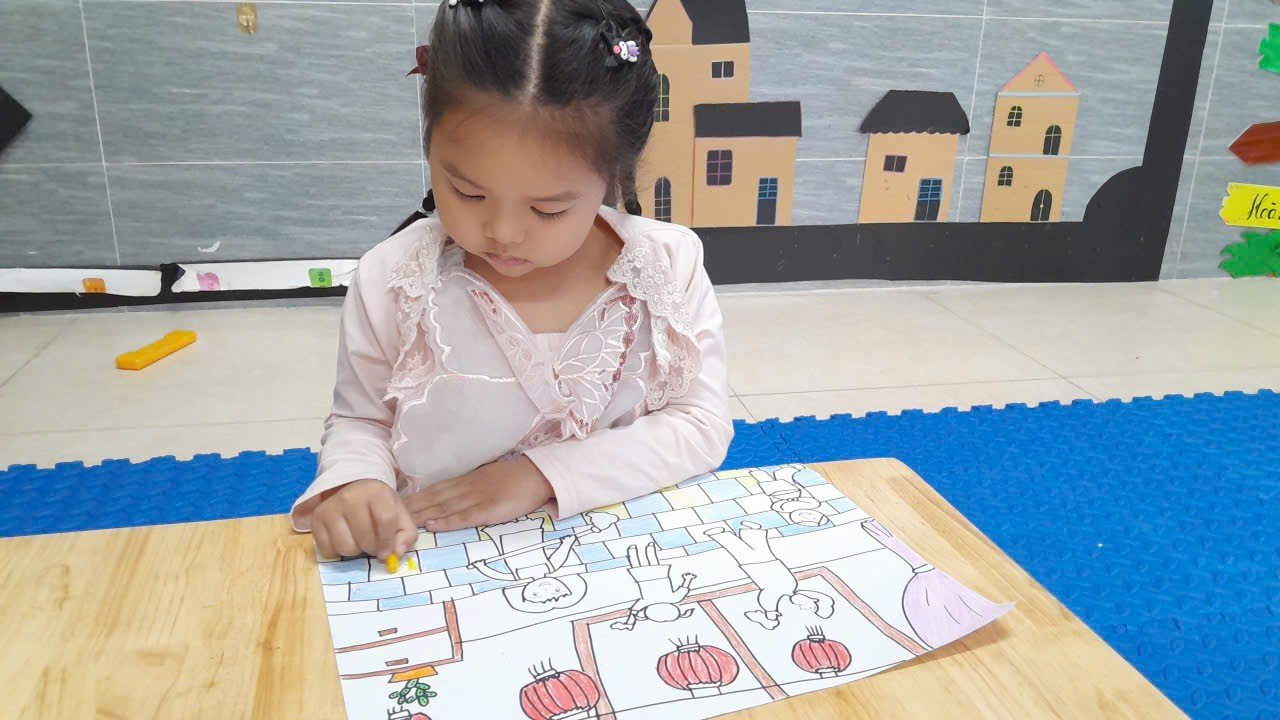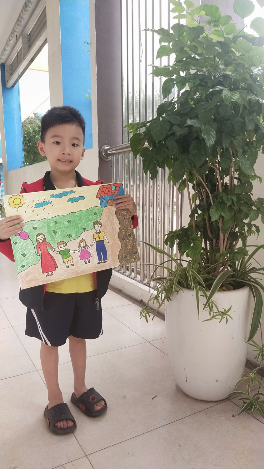 Bé Đinh Công Nhất lớp 5 tuổi A3 hưởng ứng vẽ tranh chào mừng ngày quốc tế hạnh phúc