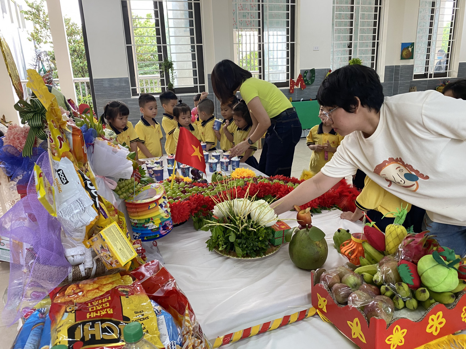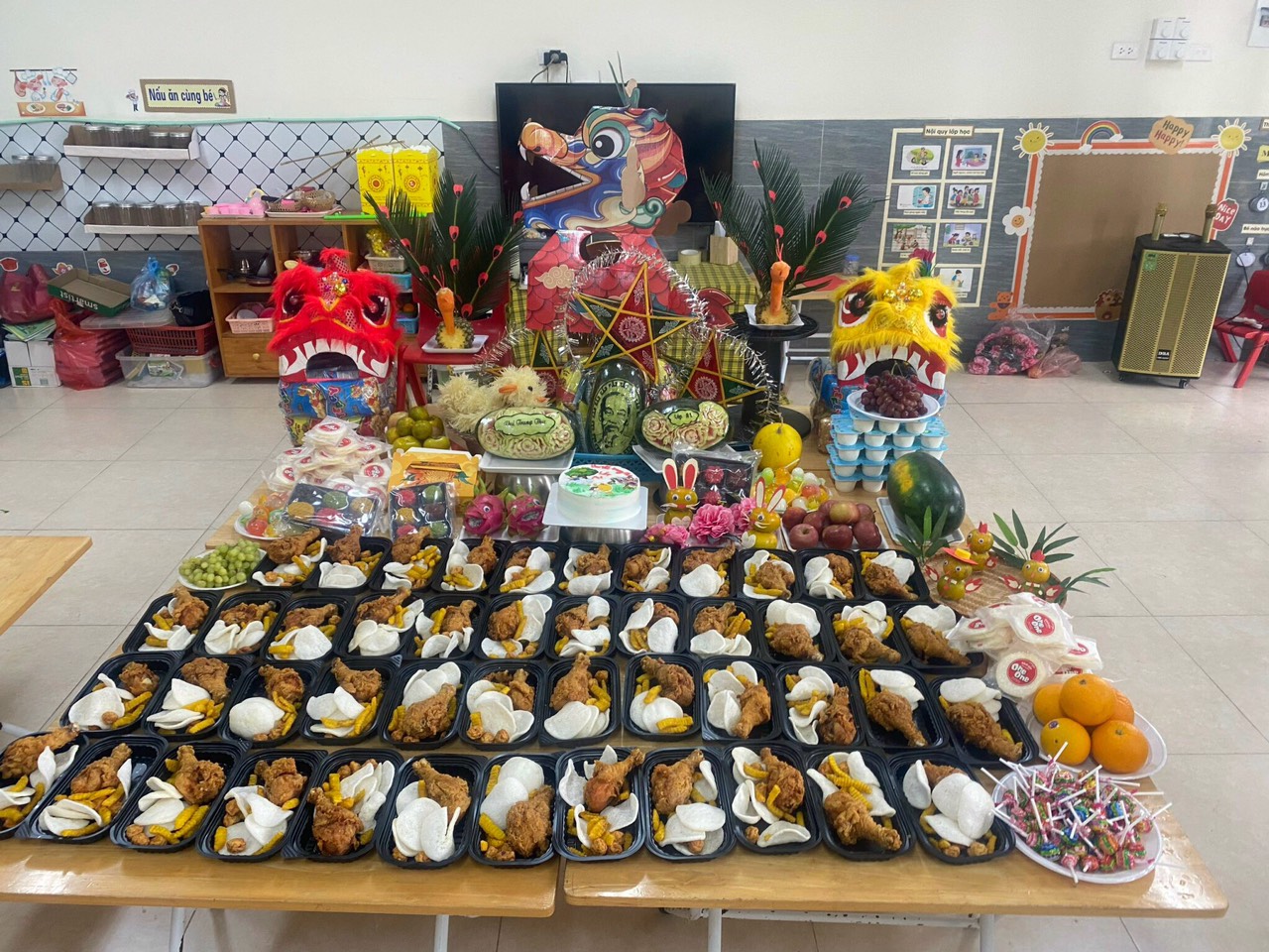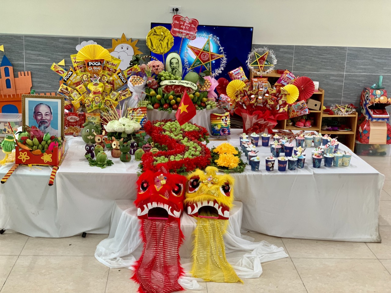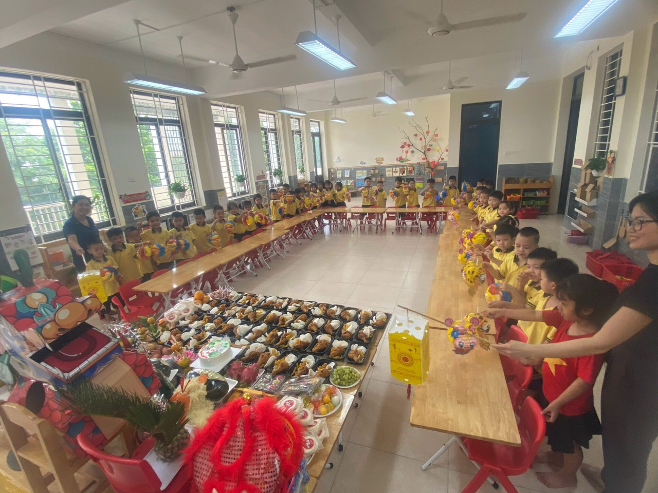 Tết Trung thu là một lễ hội truyền thống quan trọng và đầy màu sắc của người dân Việt Nam. Vào ngày rằm tháng Tám âm lịch hàng năm, người Việt tổ chức các hoạt động đặc biệt như múa lân, đốt pháo hoa, làm đèn lồng và thưởng thức những món ăn truyền thống như bánh Trung Thu. Đặc biệt, Tết Trung thu còn mang ý nghĩa là dịp để các thế hệ gia đình sum họp, chia sẻ niềm vui và tình yêu thương. Ở trường Mầm non Bình Minh I thì Tết Trung thu là ngày vui của các bạn nhỏ, các bạn được trải nghiệm các hoạt động múa lân - sư tử, rước đèn, bày mầm cỗ Trung thu, tạo ra những chiêc đền lồng xinh xắn từ các nguyên liệu và phế liệu mà các các bạn đã mang đến lớp.